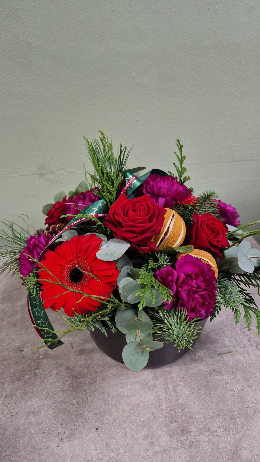 Designed as a full all-round display, this centrepiece is perfect for dining tables, coffee tables, or sideboards, making it a versatile addition to your holiday décor. Whether you're hosting festive gatherings, gifting a loved one, or simply adding seasonal elegance to your home, this Christmas arrangement brings together colour, fragrance, and natural beauty in one unforgettable design